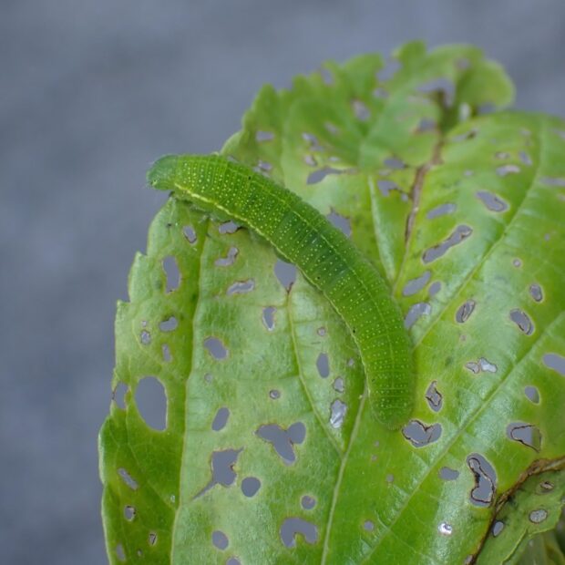 • 終齢幼虫(約25mm)。 全体に緑色のタイプ。