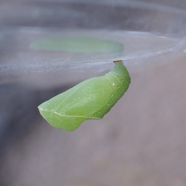 • 蛹。 羽化が近づくと黒っぽくなる。
