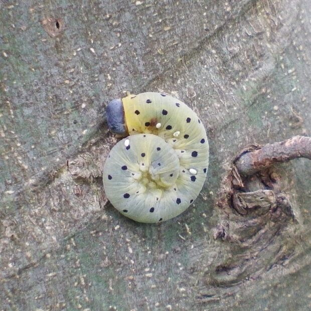 ハバチの幼虫はくるっとよく丸まる。