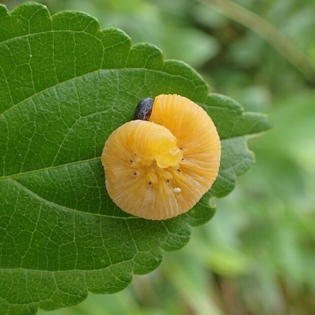 • オレンジ色の幼虫。