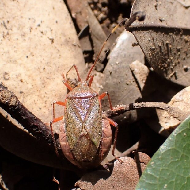 ヘラクヌギカメムシのオスの腹端はへら状、 サジクヌギカメムシのオスの腹端はさじ状(スプーン状)になっています。