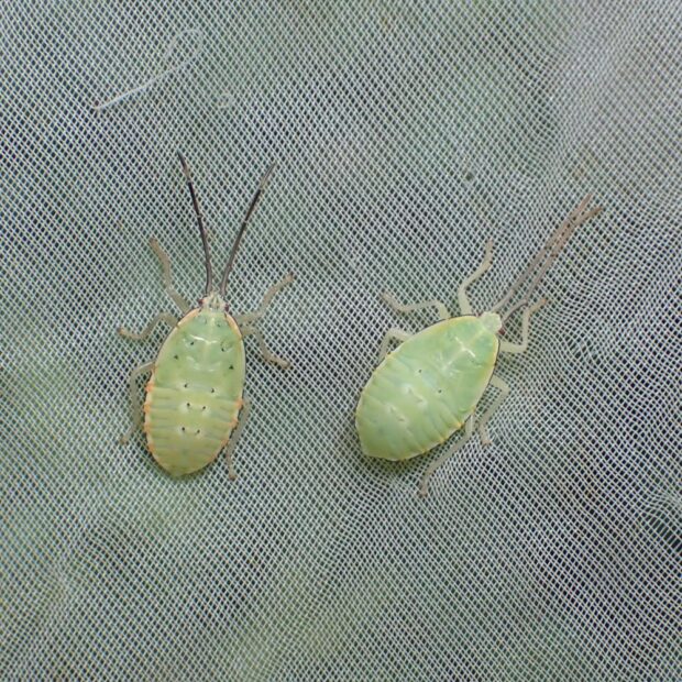 ヘラクヌギカメムシとサジクヌギカメムシは気門(呼吸のために空気を取り入れる穴)が黒くありません。