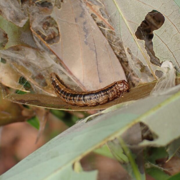 葉をつづり大きな住みかを作る幼虫