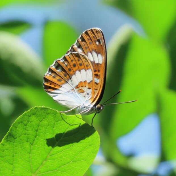 こげ茶色のはねに白い一文字模様を持つタテハチョウ。 滑空は行わず普通に羽ばたいて飛びます。 ふ化したばかりの1齢幼虫は葉先を食べて、 主脈にフンを糸で継ぎ足し長く伸ばします。 雑木林や渓流沿いで見られます。