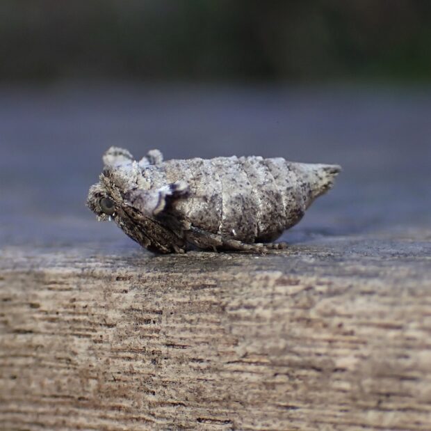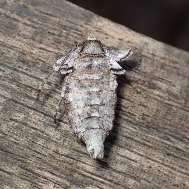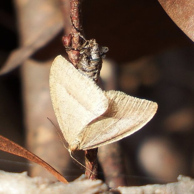 フユシャクの仲間。 11~12月の昼間、 雑木林など落ち葉が積もっている日当たりのいい所で、 オスが地面近くをヒラヒラヒラヒラ・・・乱舞して、 メスを探しています。