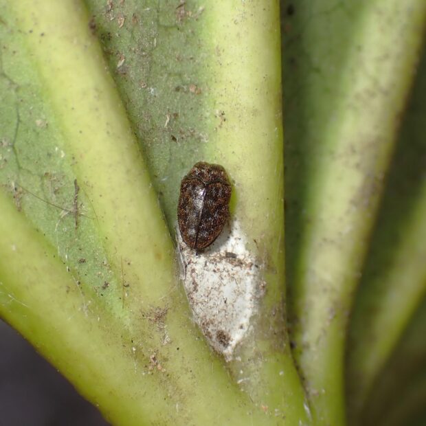 成虫が見られる時期 : 4~9月(樹皮の下などで成虫越冬)