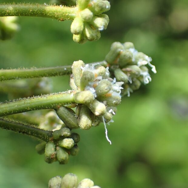 • つぼみについている白い糸のようなものは、 幼虫がお尻につけているロウ物質。