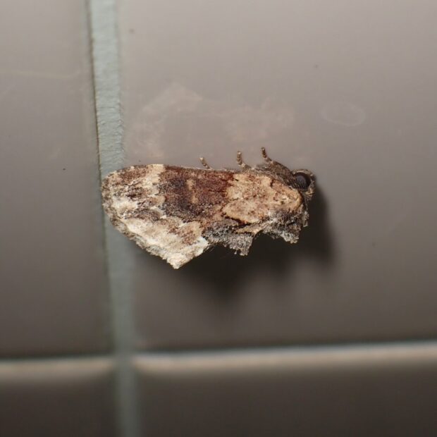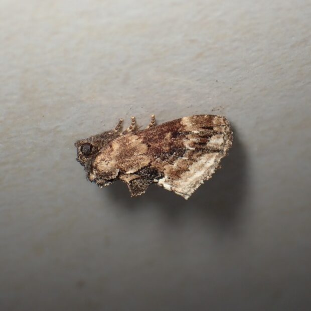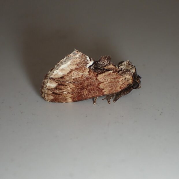 シャチホコガの仲間。 はねを屋根型に立てて閉じ、 背中がえぐれているように見えます。 「プライヤ」は昆虫学者の名前です。