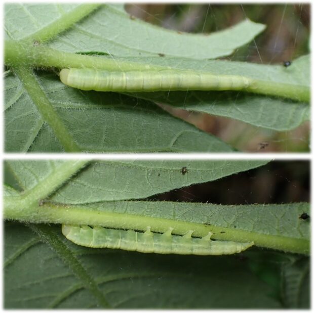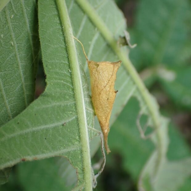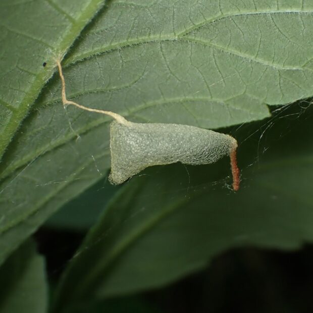 • 繭。 突起が2個あり、 しっぽのようなものがある。