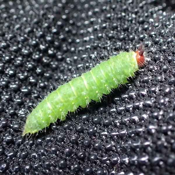• 幼虫はきれいな黄緑色で頭は茶色。