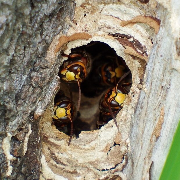刺されると激痛が走り、 命にかかわることがあります。 8~10月はスズメバチの被害が多くなる季節ですので、 巣には近づかないよう特に注意してください。 黒いものに攻撃してくるので、 黒い服装は避けましょう。 ハチがカチカチといわせながら、 近づいてくると、 慌てないでその場からすぐに離れましょう。 ハチを手で払わないようにしてください。 万が一、 刺された場合は、 傷口を水で洗い流し、 息苦しさなど様子がおかしい場合は、 一刻も早く病院で診察を受けてください。