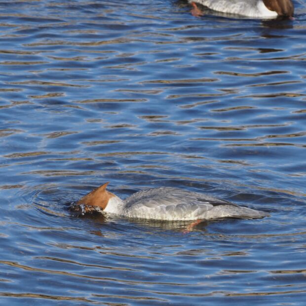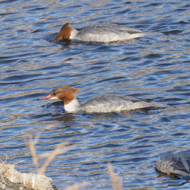 ギザギザの細いくちばしで魚を捕まえるカモの仲間
