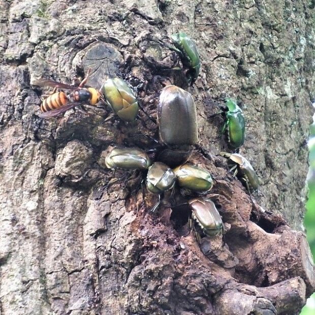 • 緑銅色。 樹液に頭を突っ込んでいる。
