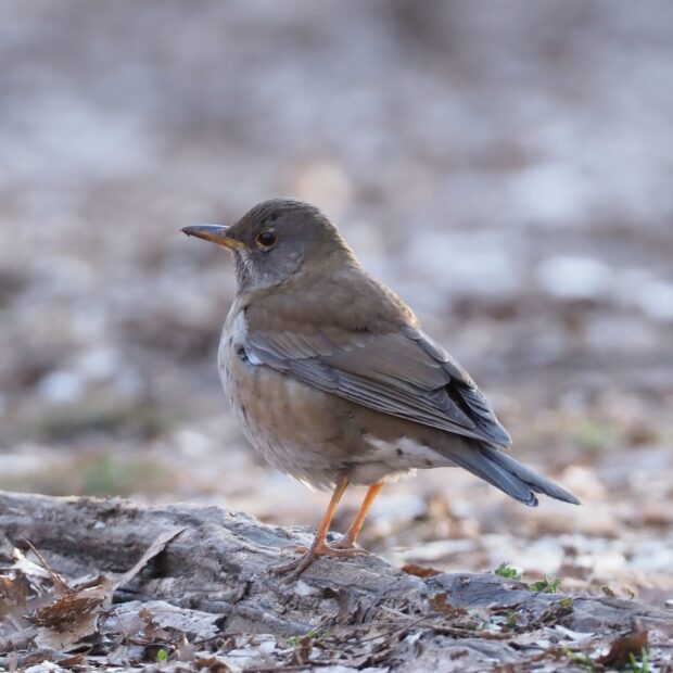 冬に日本へ渡ってくる冬鳥です。 普段の生活は一匹で行い、 渡りの時期だけ群れになります。 林の地面を歩きながら採食し、 人が近づくと「ジュジュジュ」っと警戒音を発します。