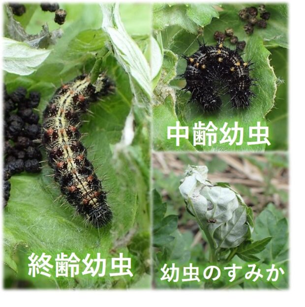 食べ物 : 幼虫はヨモギ、 ハハコグサ、 ゴボウなどの葉 成虫は花の蜜など