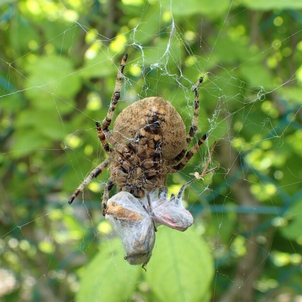 クモの網はたんぱく質でできています。 丈夫で柔軟性があるため、 大きな獲物がかかることがあります。