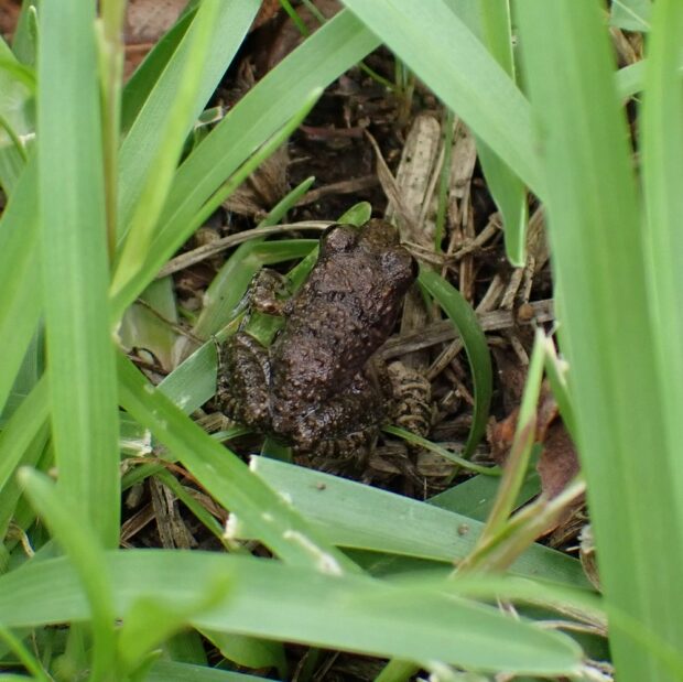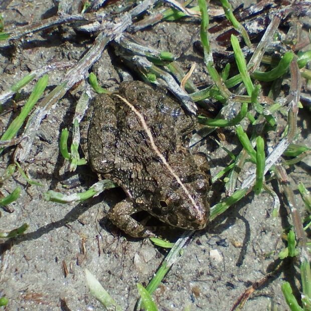 田んぼにすむ茶色のイボがあるカエル。 背中に線がないものと線があるものがいます。 西日本から南西諸島には自然に分布していますが、 関東地方のものは移入種(人為的に持ち込まれた生き物)と言われています。 (MT)