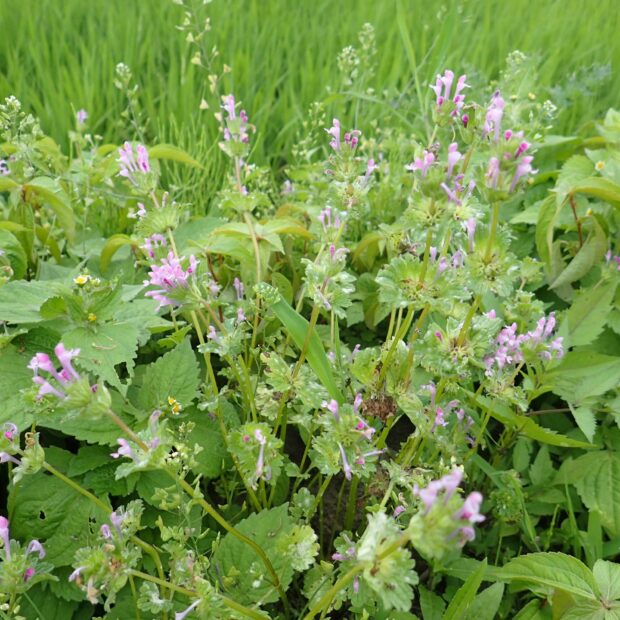 畑の雑草としてよく見られ、 春先から濃いピンクの花が咲きます。