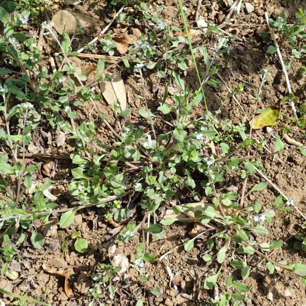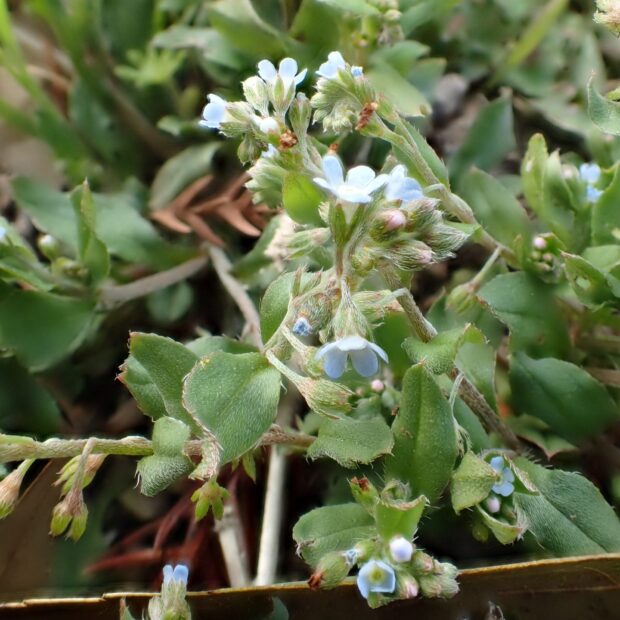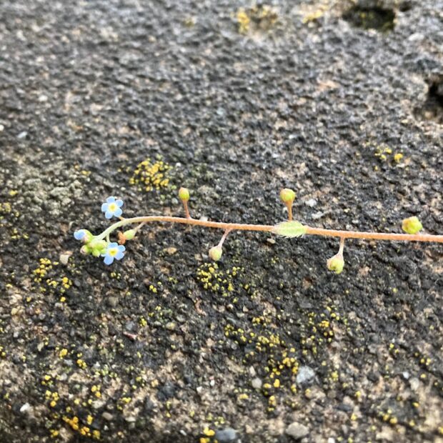 春に尾状に伸びる茎の先端にワスレナグサに似た小さな青い花を次々と咲かせます。 名前のとおり、 もむとキュウリのにおいがします。