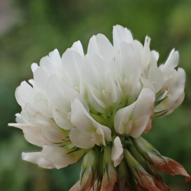 クローバーと呼ばれることが多い帰化植物です。 シロツメクサは白い詰め草の意味で、 江戸時代にオランダから運ばれたガラス器の詰め物として日本に来たことによります。
