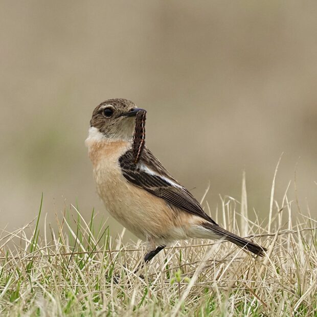 平地や山地の草原や農耕地で見かけることがあります。 平地では秋や春などの渡りの時期に見ることがよくあります。 草原や農耕地の突き出た棒先や草の先にとまって、 尾羽を上下にゆらします。 成長夏羽のオスは喉や顔が黒色で、 メスは全体的に茶色で背面の色が濃いです。