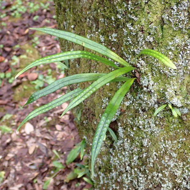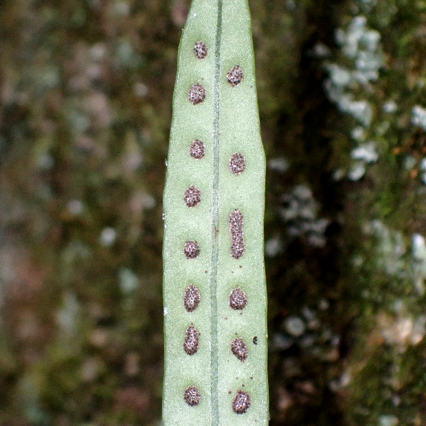 木の幹などに生える細長い葉のシダ。 シダなので花が咲かず、 葉裏に大きな丸い胞子のう群を2列につけます。 名前のノキは、 かつて軒先(屋根の突き出た部分)によく生えていたことに由来します。 しかし木造家屋が少なくなった現代では、 軒先で中々見られなくなってしまいました。