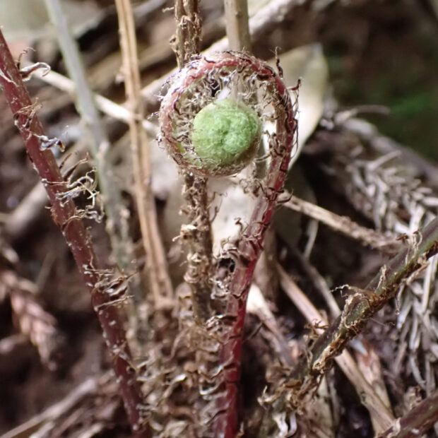 「ヘビノネゴザ」という名前は、 700種以上ある日本のシダの中でも一際変わっていて、 放射状に葉を広げる姿がヘビがとぐろを巻いて休むための寝茣蓙(ねござ)に例えられたことに由来しています。