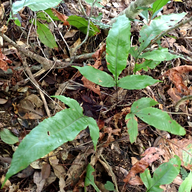 日本では琉球にのみ見られるナナバケシダの仲間のシダ。 株の成長に応じて葉の切れ込み数が0→3→5→と多くなっていきます。 胞子をつける葉は小さく、 立つように出します。 名前のハルランは人名に由来します。