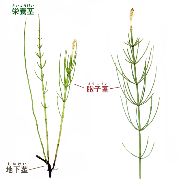 湿地によく群生するシダ。 見た目はまさにスギナの上にツクシがついているような変わった姿をしています。 植物名の犬には劣っているという意味があるので、 この場合は食用に不向きなスギナ(ツクシ)の意味があります。