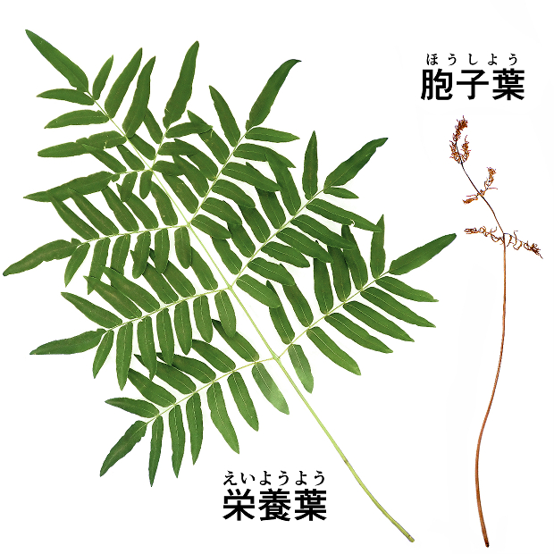 • 胞子葉と栄養葉で見た目が大きく違う。