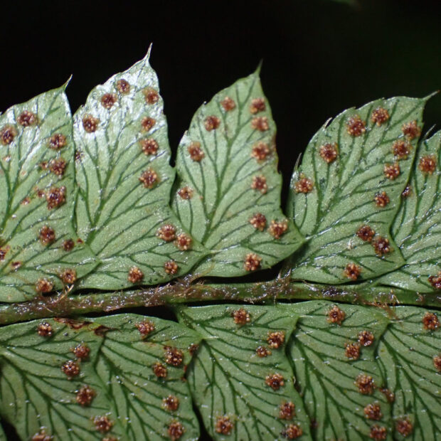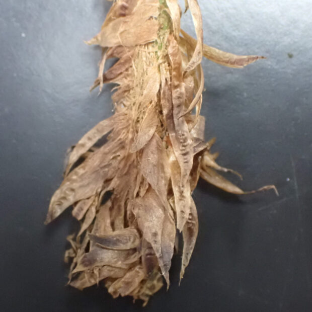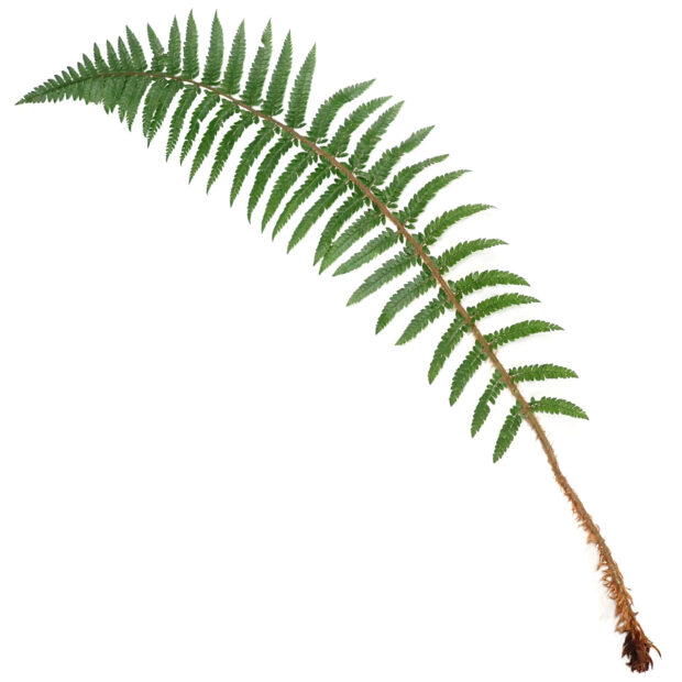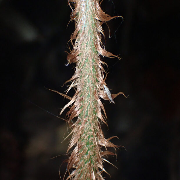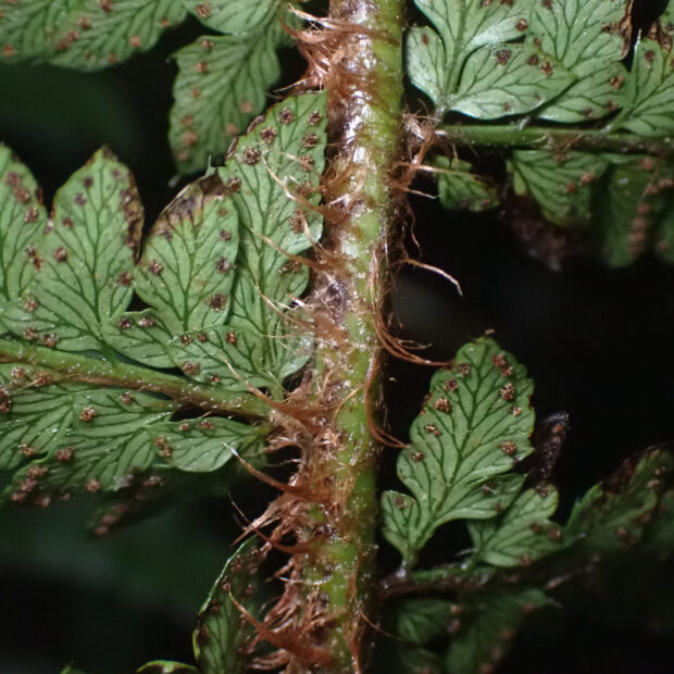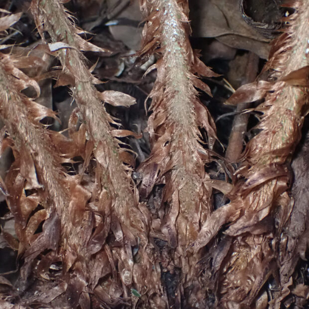 葉柄基部の鱗片。 中央が栗色の鱗片が混じる。