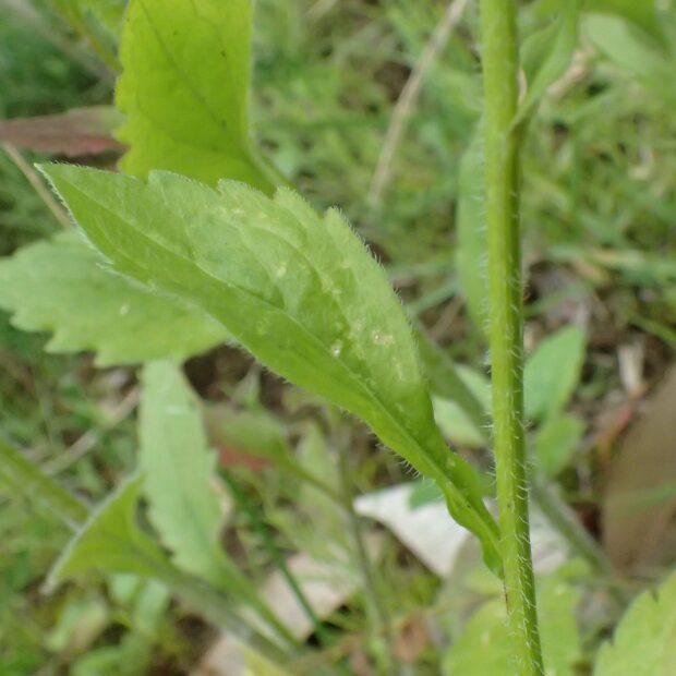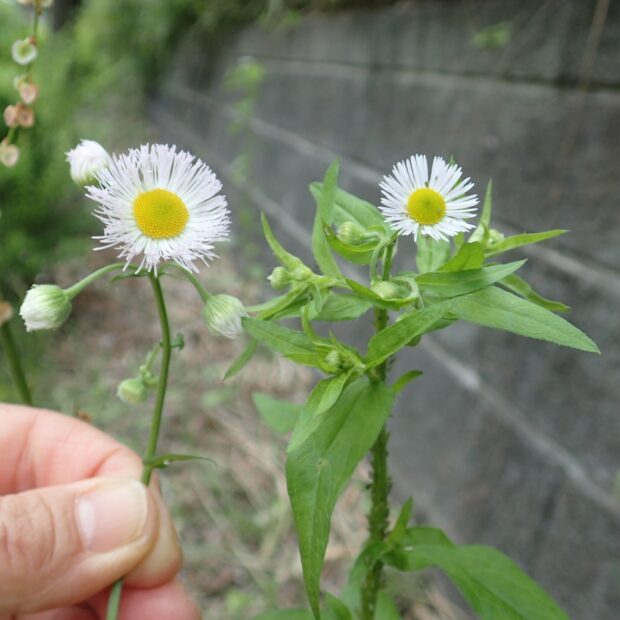 ハルジオンより花が少し小さく、 花びらの数が少なめ、 ハルジオンのようにつぼみがうなだれない、 茎は中空でないなどの違いがあります。