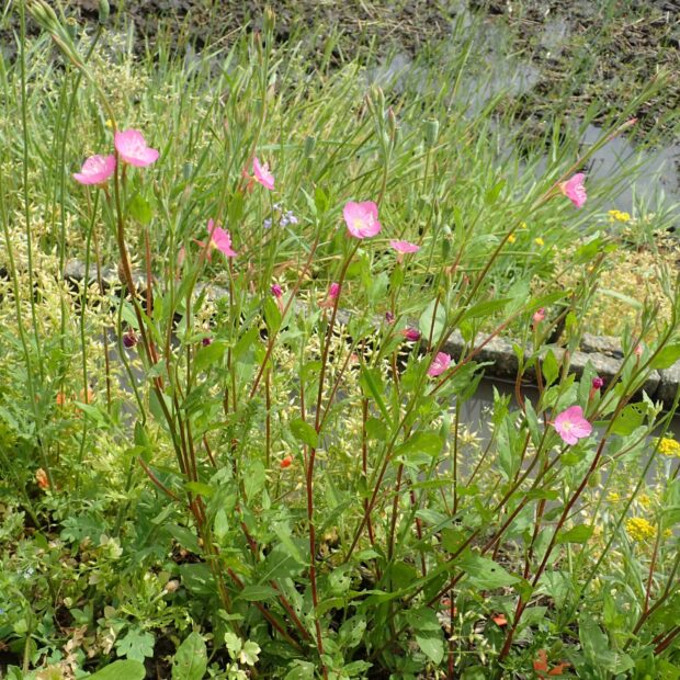 花は淡紅色~紅紫色で、 夕方咲いているのでユウゲショウ(夕化粧)と名がついたようですが、 実際には未明に開花し1~2日間咲いているそうです。