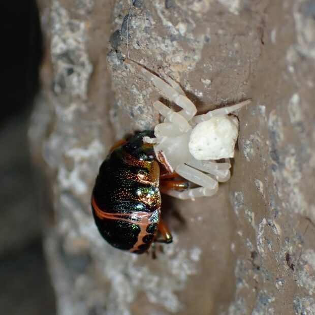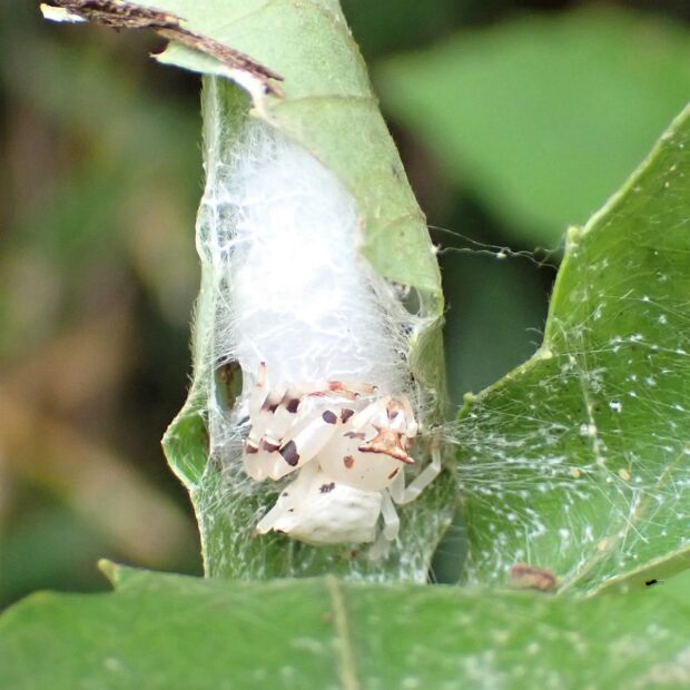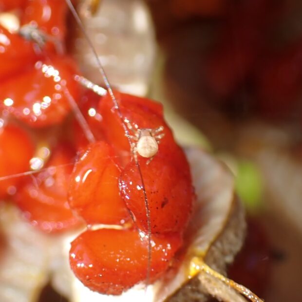 小さな幼体が、 トベラのネバネバの実にくっついてしまった。