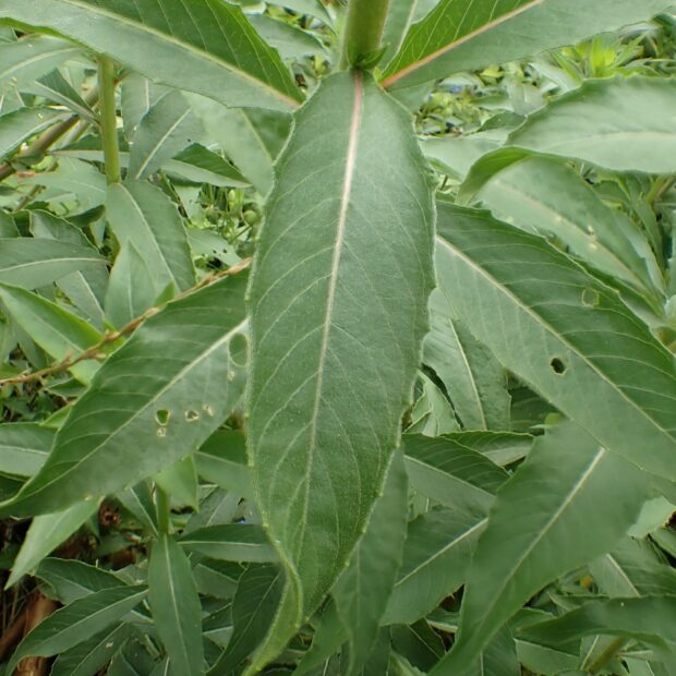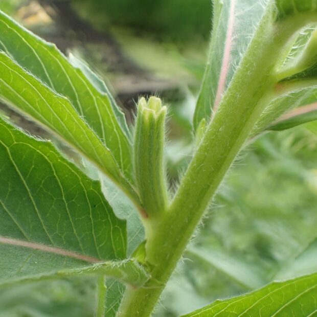 メマツヨイグサの花は大きさや形に変化があり、 花びらが離れているものをアレチマツヨイグサと呼ぶこともありますが、 境界がはっきりしません。 草丈1mを超えて旺盛に繁茂し、 耕作放棄地を埋め尽くすこともあります。