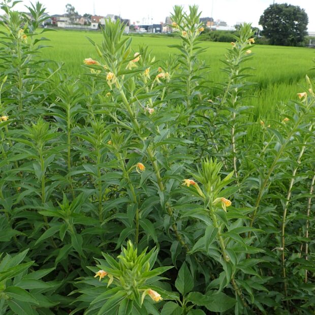 近年、 分布を急拡大しているコマツヨイグサが畑地や市街地周辺で増えています。