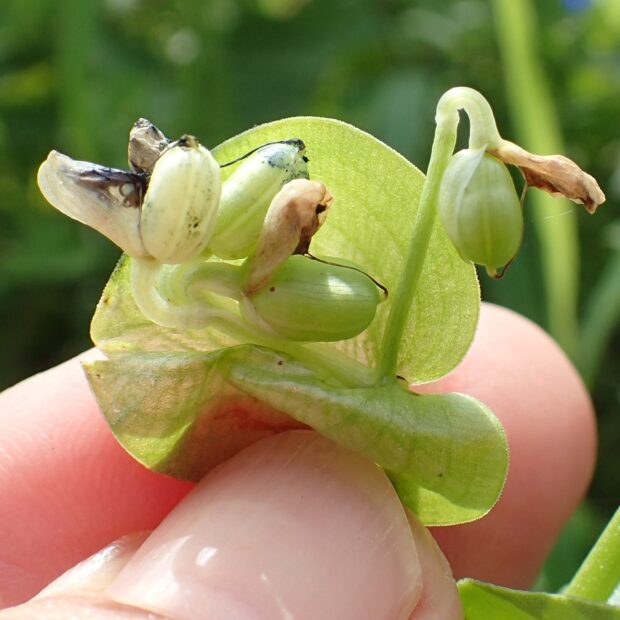 ツユクサの花は早朝から咲いて昼前にはしぼんでしまいます。 夏の朝、 早起きをしてツユクサの花を集め、 色水遊びをしてみましょう。 紙に花を置いて直接指でこすったり、 叩いたりして色を移すこともできます。