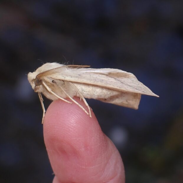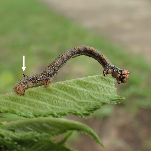 早春にあらわれるシャクガの仲間。 とまったとき、 前ばねの黒い線が斜めに伸びるのが特徴。 触角は、 オスはくし状(羽毛状)、 メスは糸状です。 雑木林などで普通に見られます。 (MT)