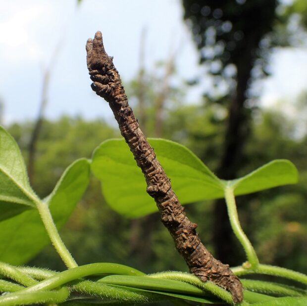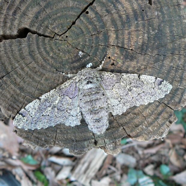 春にだけ見られるエダシャクの仲間。 やや紫がかった灰褐色で、 色や模様は変異があります。 幼虫は大きなシャクトリムシで、 頭のV字型の突起が、 ウサギの耳のように見えます。 雑木林や自然公園などで見られます。 蛹越冬。 (MT)