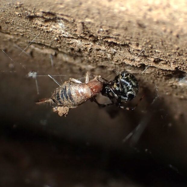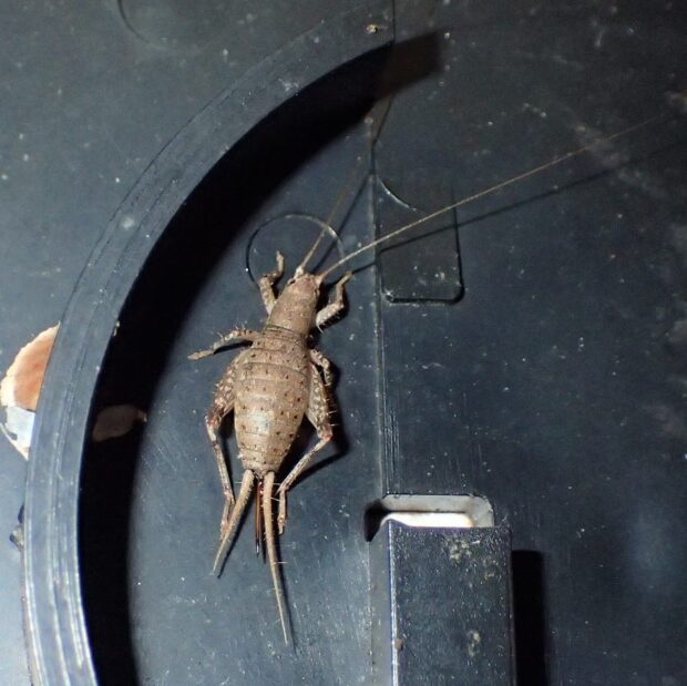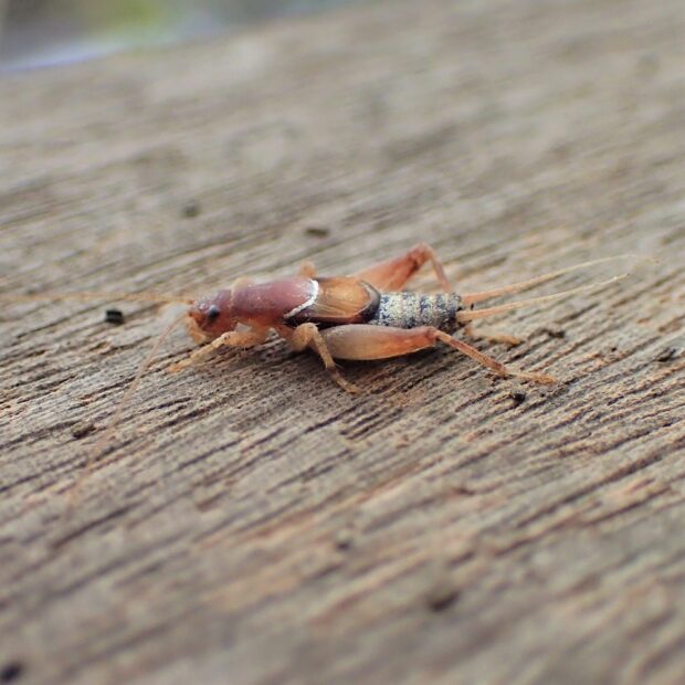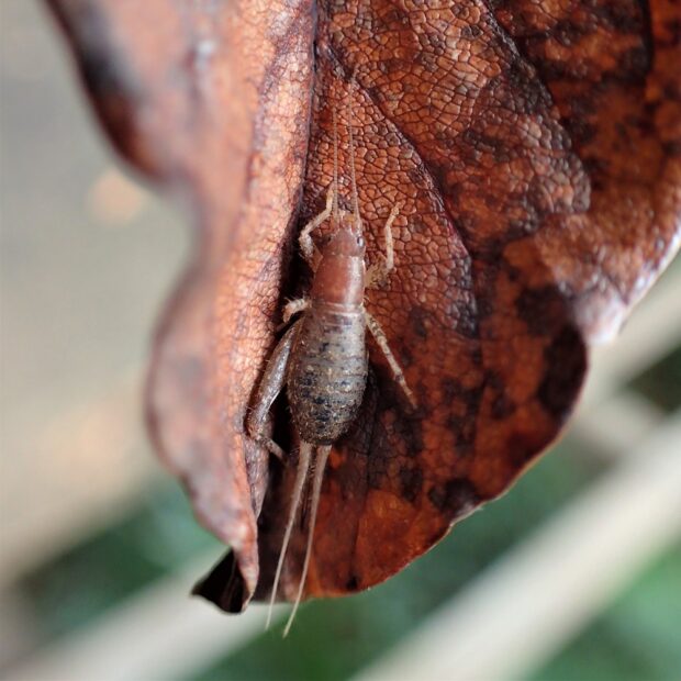 樹上性のコオロギに近い仲間。 庭木、 生垣、 公園の樹木などで、 「チン、 チン、 チン」と小さな声で鳴き、 家に入り込むこともあります。 鳴き声が鐘をたたく音に似ていることから、 カネタタキと名づけられました。