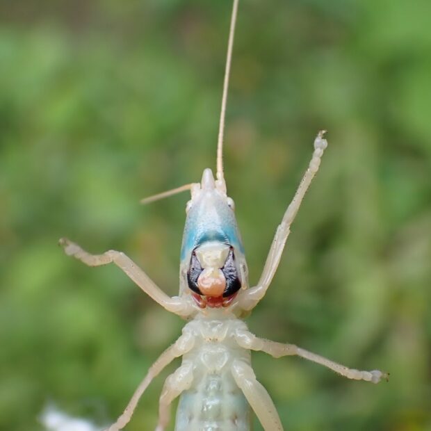 似ているクビキリギスは、 口の周りが赤いですが、 シブイロカヤキリは黒いです。