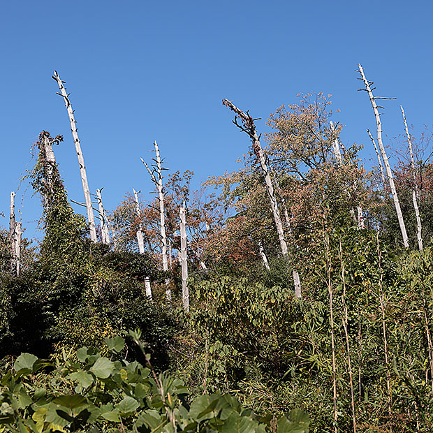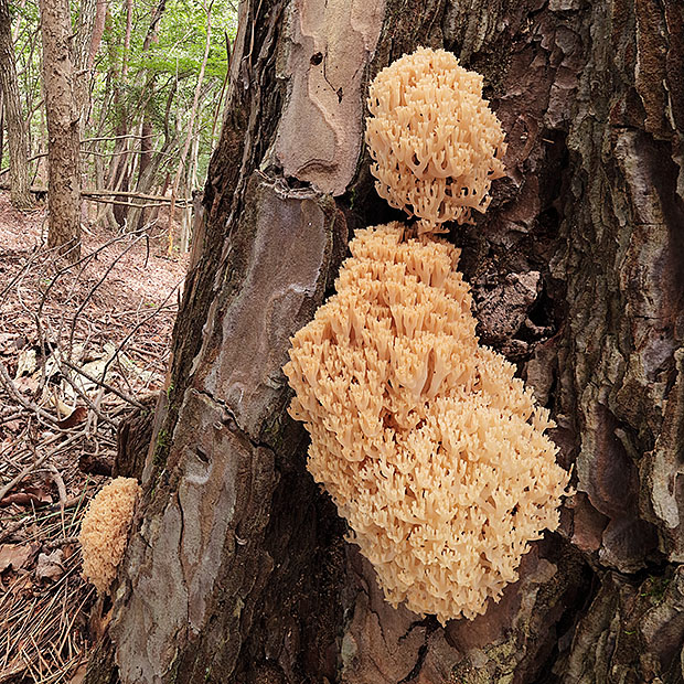 「松枯れ」といってマツが突然枯れたあとに、 フサヒメホウキタケが発生することがあります。