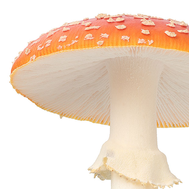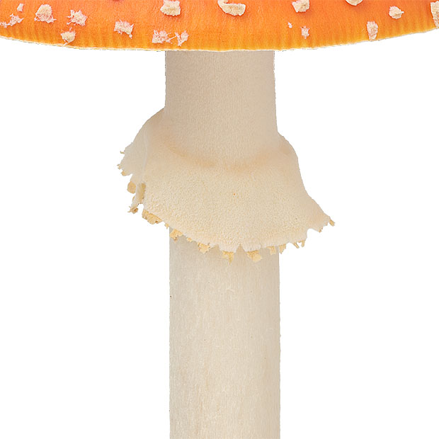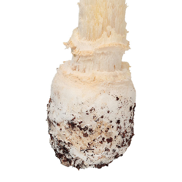 食用きのこのタマゴタケとにている毒きのこです。 傘の白いいぼは雨でとれやすいので、 いぼの有無だけで判断しないでください。 ひだや柄の色、 つぼの形で判断してください。