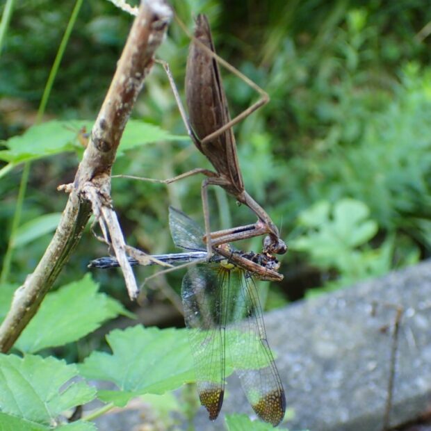 ノシメトンボを捕える。