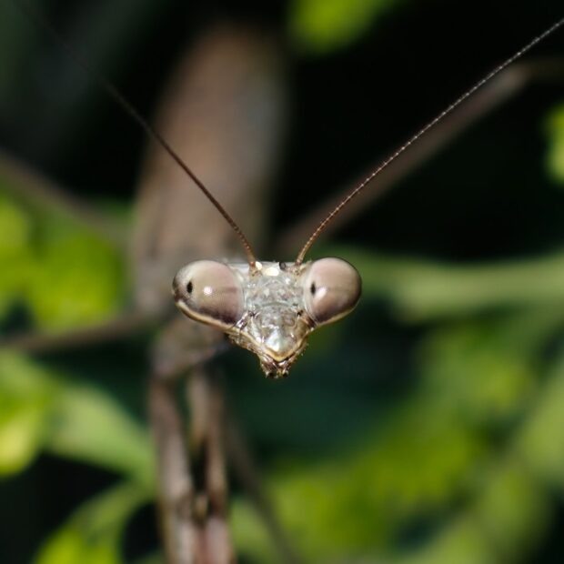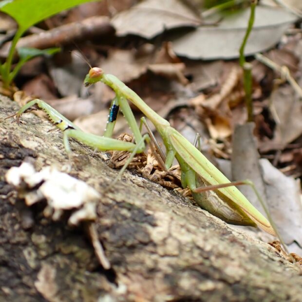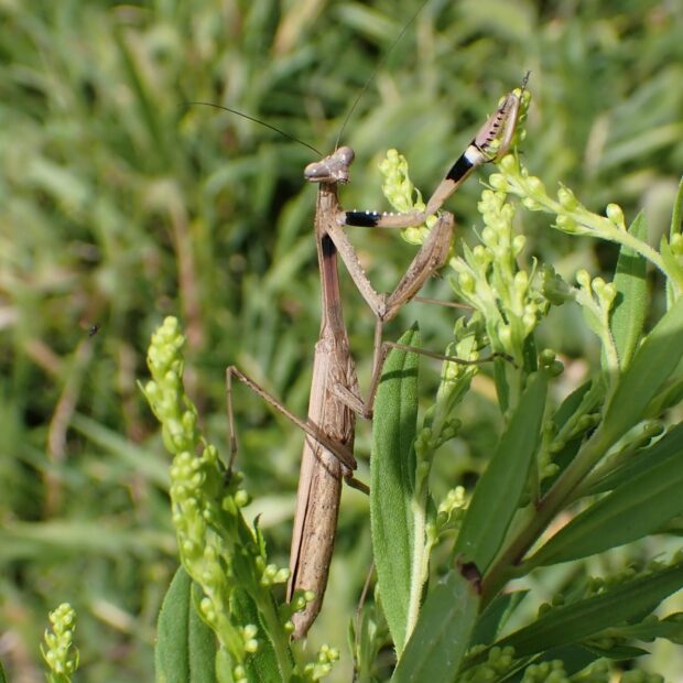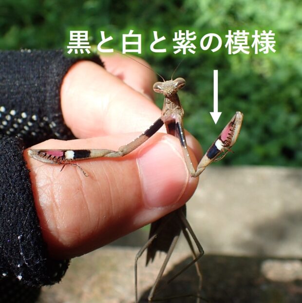 鎌状の前あしの内側の色に注目。