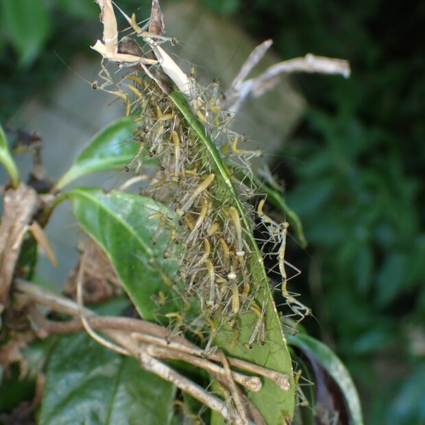 • ふ化してまもない幼虫の集団。