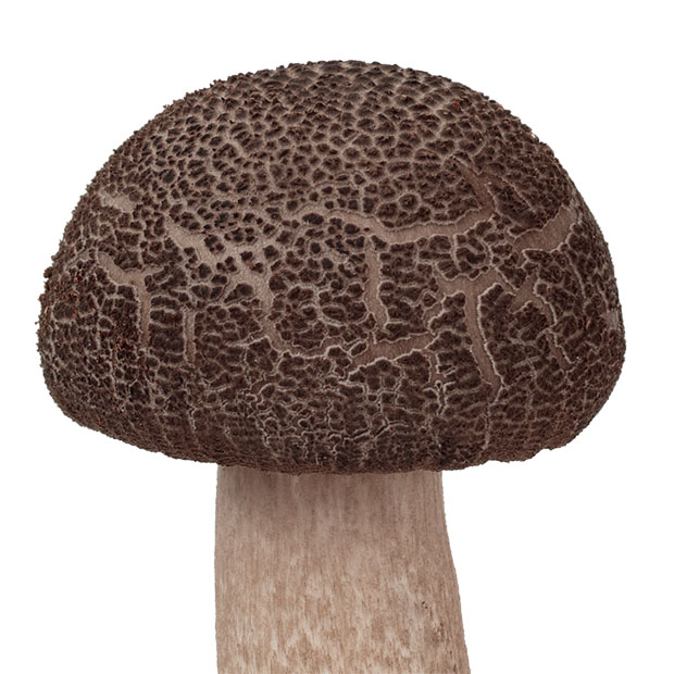 傘の表面は、 褐色のいぼがひびわれてついてます。