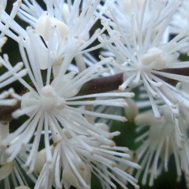 • 白い雄しべの花糸が伸びてブラシの毛のように見える。