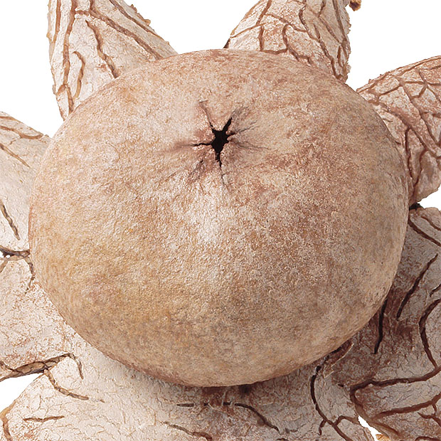 星形をしたきのこです。 晴れの日になるとまるまってしまい、 雨が降ると星形にひらきます。 発生すると腐りにくいので、 冬を越して春になってもみつかります。