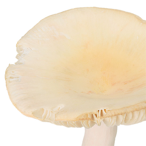 まるでモモの果実のような傘のきのこです。 指で触ってみると少しぺたぺたして、 カブトムシのにおいがします。 カブトムシのにおいのするきのこにニオイコベニタケがあります。
